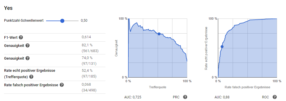 As I am not altogether happy with these results, I wanted to know how our solution fares in comparison with a Google AutoML model. So, I fed the data into Google Cloud and let it train for an hour. Interestingly, AutoML did use the whole hour and charged me 16$, but it improved the accuracy results by 2.1%.