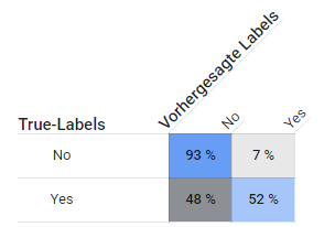 That is also not that great - it’s a little bit better in the overall accuracy than the model we trained here, but looking at the confusion matrix, it’s practically no good in achieving our business goal.