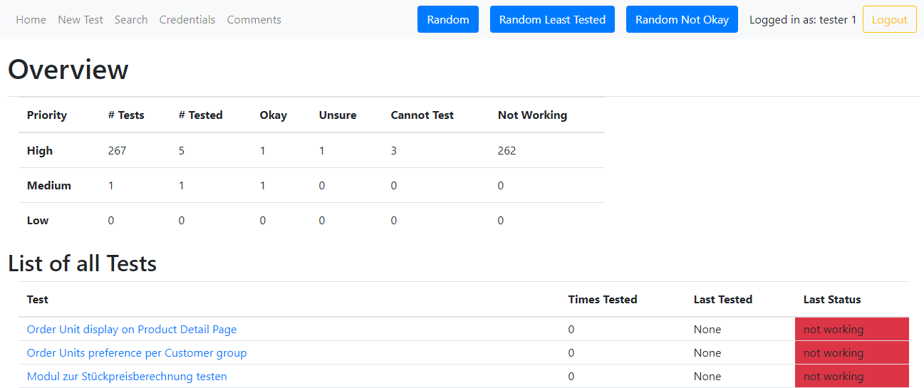 A lot of communication overhead goes into sharing credentials for testing, such a login data for the admin backend or test user credentials. So in order to simplify this process, all credentials that can be shared among the testing team without compromising the security of any live environment can be collected and shared on an overview page as well as linked to the specific issues the are connected with.